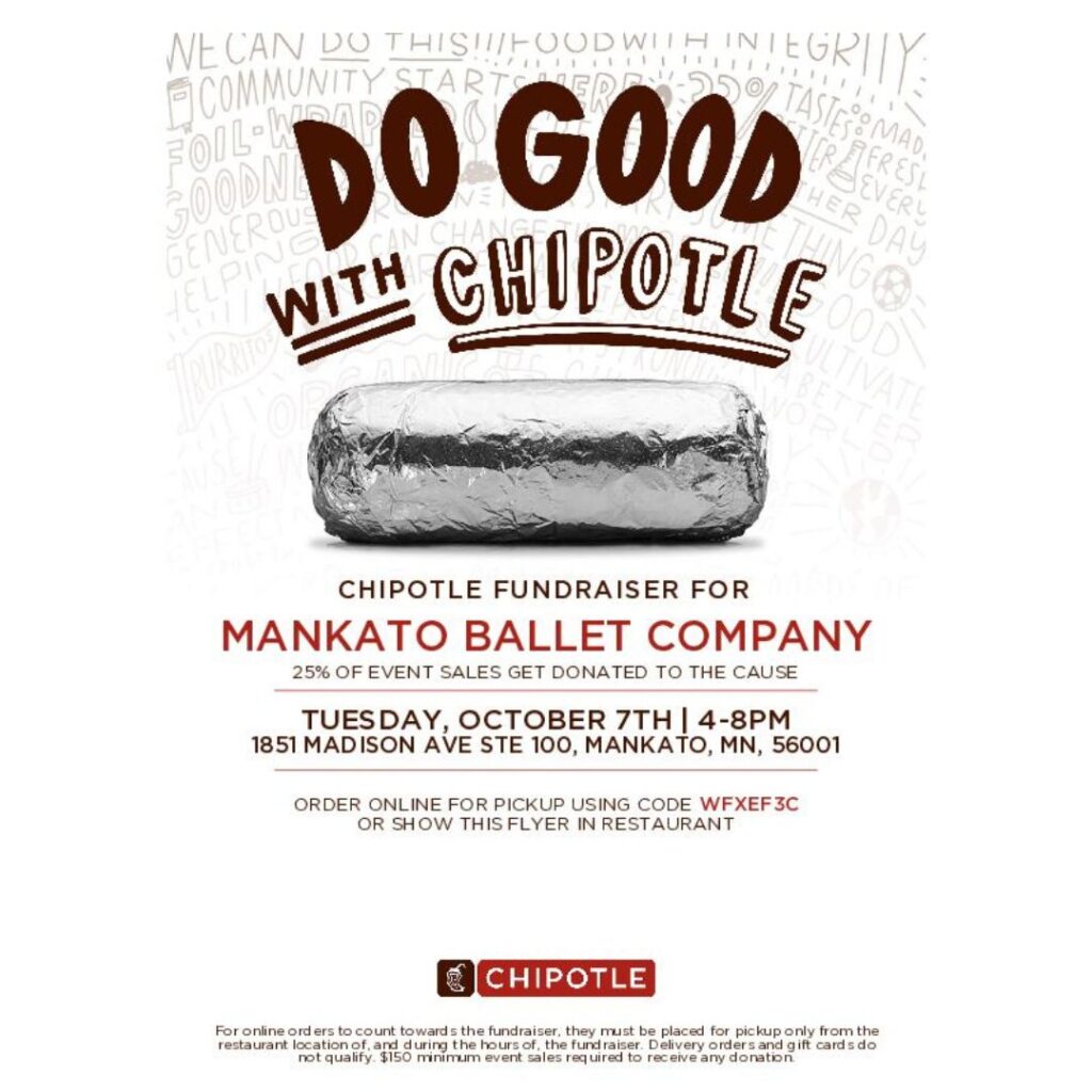 Our first Dinner for Dancers will be at Chipotle on Madison Ave. Order and mention MBC between 4pm and 7pm and MBC gets a portion of your purchase back as a donation!